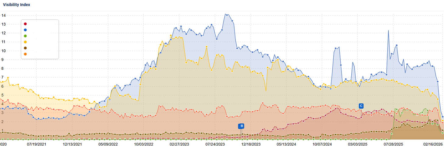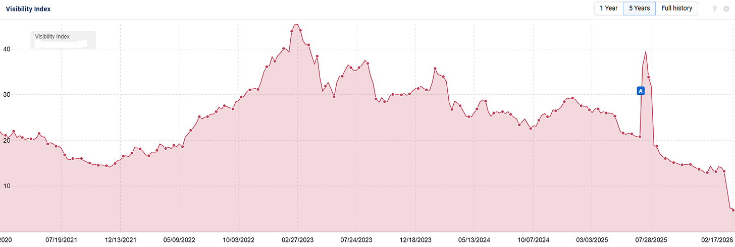 And this is what the impact looks like when you look at the company’s full domain’s visibility in organic search: