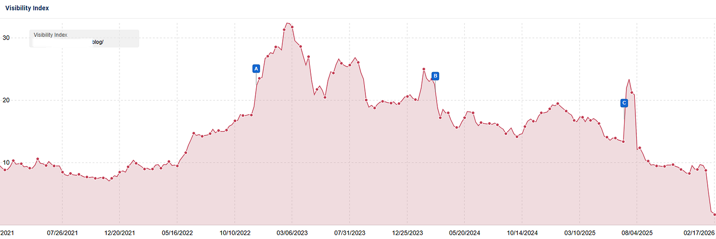 I recently wrote about an unconfirmed Google algorithm update that rolled out in mid-January, 2026, which negatively impacted the organic search visibility of dozens of major brands. For most of the impacted sites I analyzed, the impact was disproportionately targeted to the company’s blog, or another folder containing informational articles and resources.